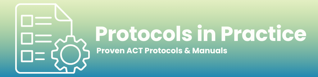 ACBS Members: If you have an ACT treatment protocol you would like listed here, log in, and click on the "add child page" link at the bottom of this page. When adding your content, remember that you can attach relevant files and documents.